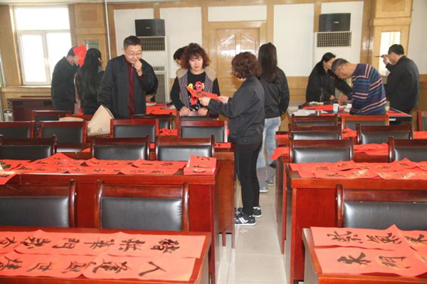 火紅的對聯(lián),淡淡的墨香,一副副工整喜氣的春聯(lián)擺滿了大廳。春聯(lián)內(nèi)容既有喜迎豬年辭舊迎新的美好愿景,也有歌頌黨恩、大展宏圖的勵志詞句,一幅幅精彩的書法作品,一句句吉祥如意的春聯(lián),不僅讓職工目睹了書法家的風采,更為即將來臨的春節(jié)增添了濃濃的喜慶氛圍。機關干部職工紛紛前來領取現(xiàn)場寫好的春聯(lián)、更接受“私人訂制”,現(xiàn)場喜氣洋洋、歡聲笑語,不僅送出了新春的祝福更送出了濃厚的年味兒和文化味。