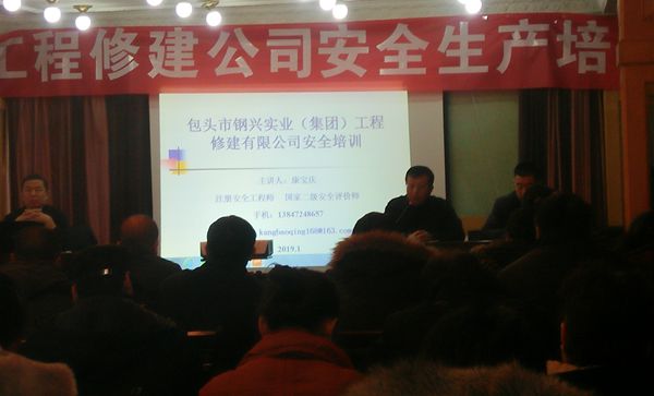 于2019年1月9上午8點,集團公司聯合工程修建公司進行為期一天的安全培訓,特邀請包鋼集團公司生產部張鋼和康寶慶(注冊安全工程師 二級安全評價師)為各單位安全員進行安全培訓。